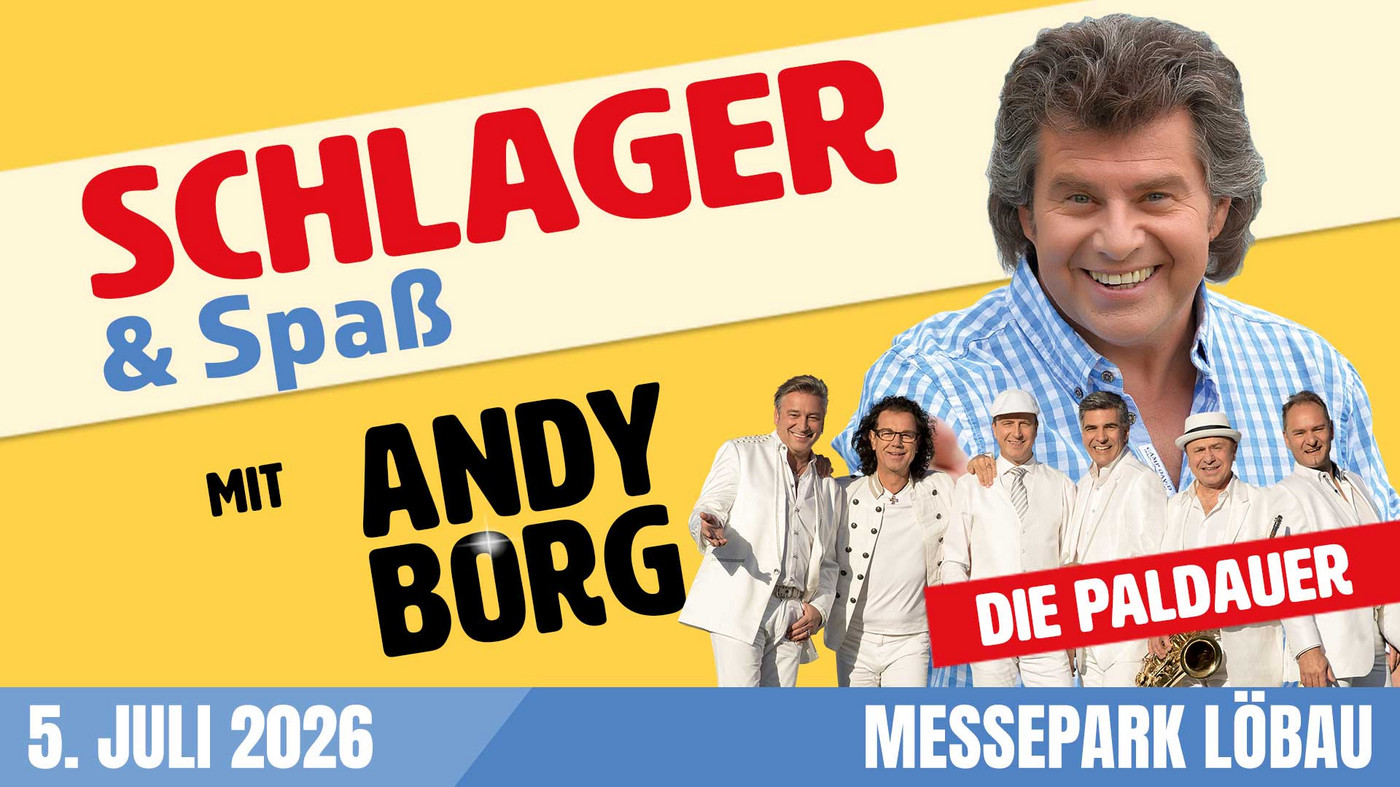 Am 05. Juli 2026 verwandelt sich der Messepark Löbau in ein Paradies für alle Freunde des deutschen Schlagers! Beim „Schlager & Spaß Open Air“ sorgen Andy Borg und die Paldauer für beste Unterhaltung, gute Laune und unvergessliche Momente unter freiem Himmel.